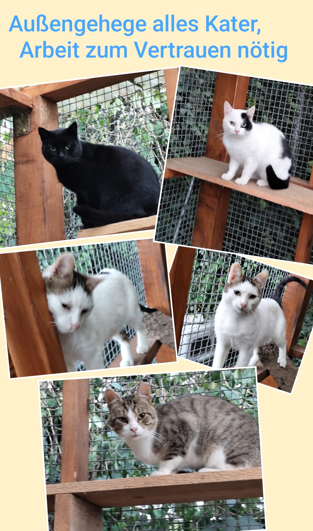 Der Tierschutzverein Teterow und Umgebung e.V. steht vor großen Herausforderungen. Unsere Pflegeplätze sind komplett belegt, und viele Samtpfoten warten sehnsüchtig auf ihre zweite Chance. Einige unserer Kater sind bereits zutraulich und bereit, in ein neues Zuhause zu ziehen. Andere brauchen noch etwas Geduld und liebevolle Zuwendung, um Vertrauen zu fassen. Doch eines haben sie alle gemeinsam: Sie sehnen sich nach einem warmen Platz und einem Menschen, der ihnen Liebe schenkt. Der Tierschutzverein Teterow freut sich über jede Art von Unterstützung. Hier sind einige Möglichkeiten, wie Sie helfen können: 1. Adoption: Geben Sie einer der Katzen ein liebevolles Zuhause. Jede Vermittlung entlastet den Verein und gibt einem Tier die Chance auf ein besseres Leben. 2. Spenden: Finanzielle Unterstützung ist dringend notwendig, um Futter, medizinische Versorgung und Unterkünfte für die Tiere zu finanzieren. 3. Mitgliedschaft: Werden Sie Teil des Teams und unterstützen Sie den Verein aktiv oder organisatorisch. 4. Pflegeplätze: Wenn Sie vorübergehend Platz und Zeit haben, können Sie eine Katze als Pflegefamilie aufnehmen.